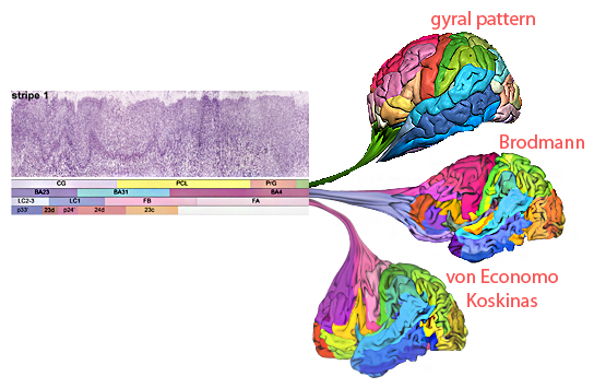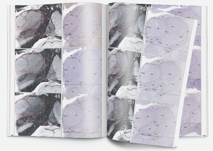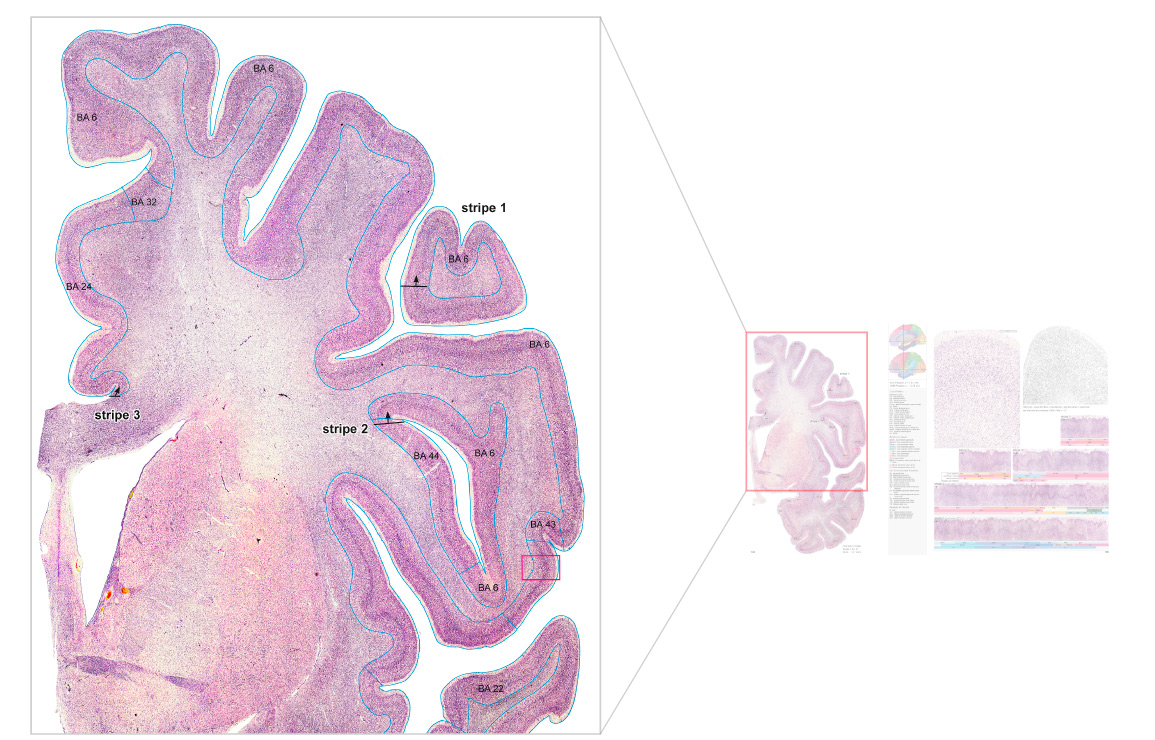 Cell (Nissl) stained sections with delineated Brodmann areas.